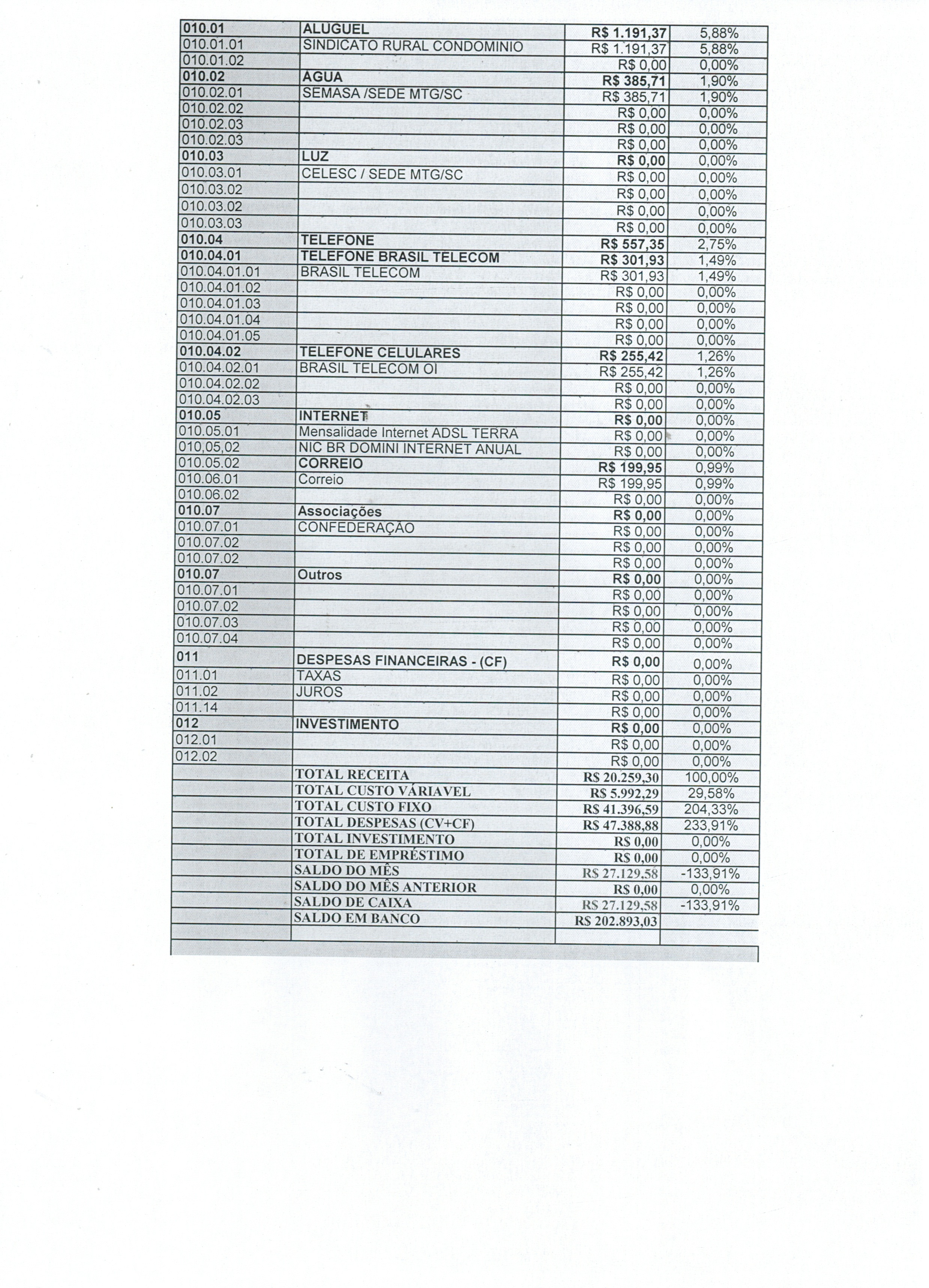Financeiro MTG-SC mês 10-2012