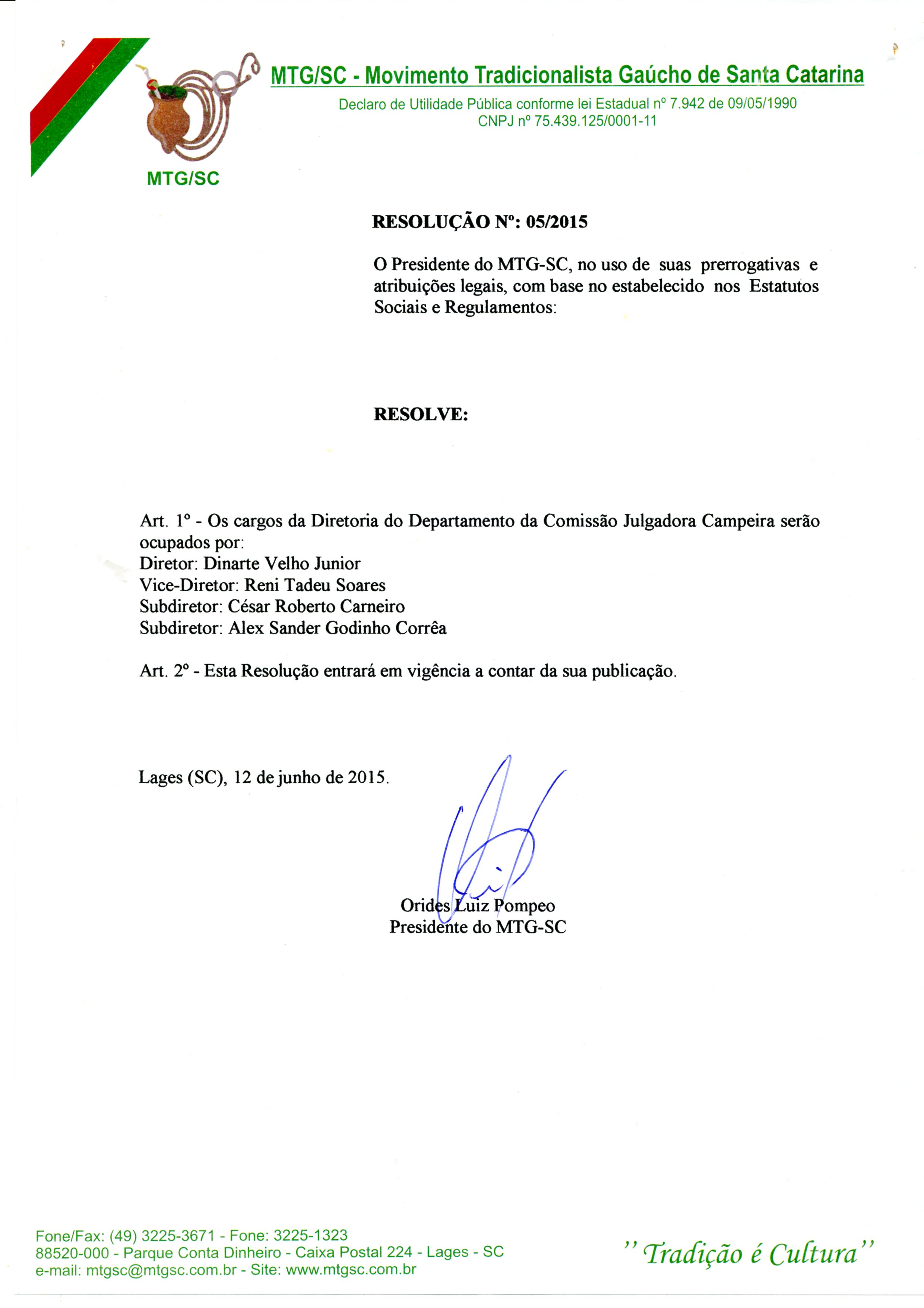 RESOLUÇÃO N°: 05/2015