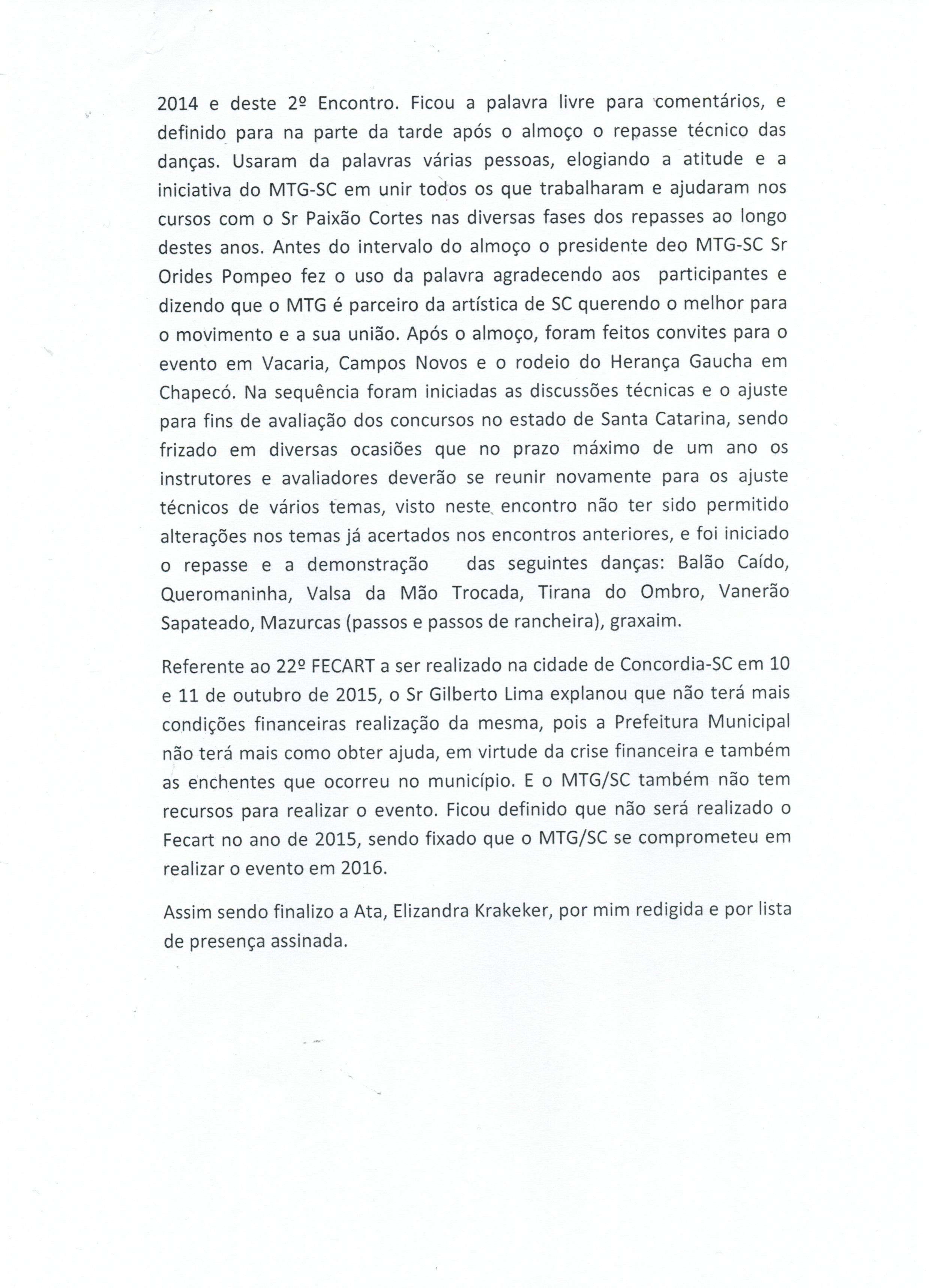ATA DA REUNIÃO DO DPTO ARTÍSTICO - LAGES 25/JULHO/2015